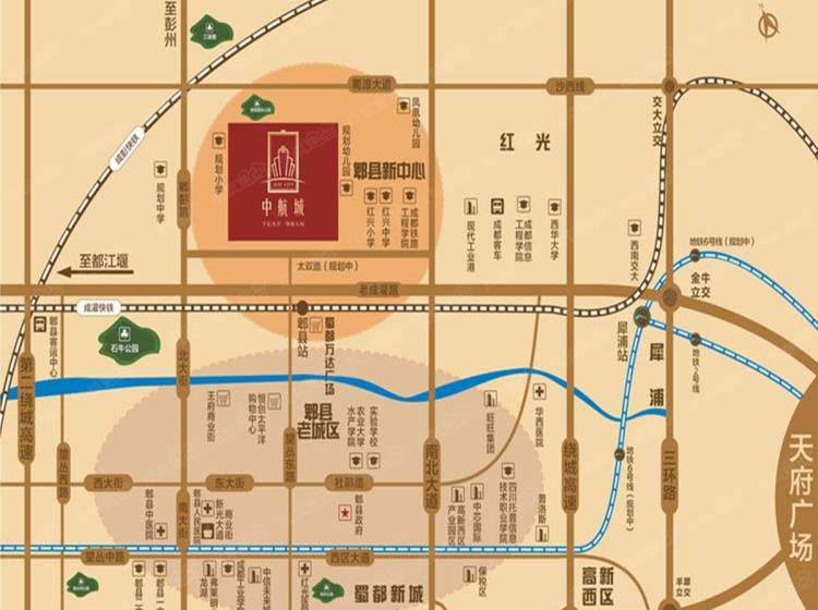 周边有凤凰城幼儿园、金贝贝幼儿园、红兴小学、郫县一中、二中、西华大学、西南交大、电子科等学校,让业主的小孩赢在起跑线。