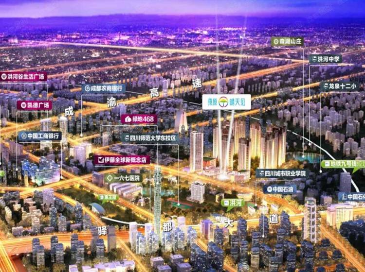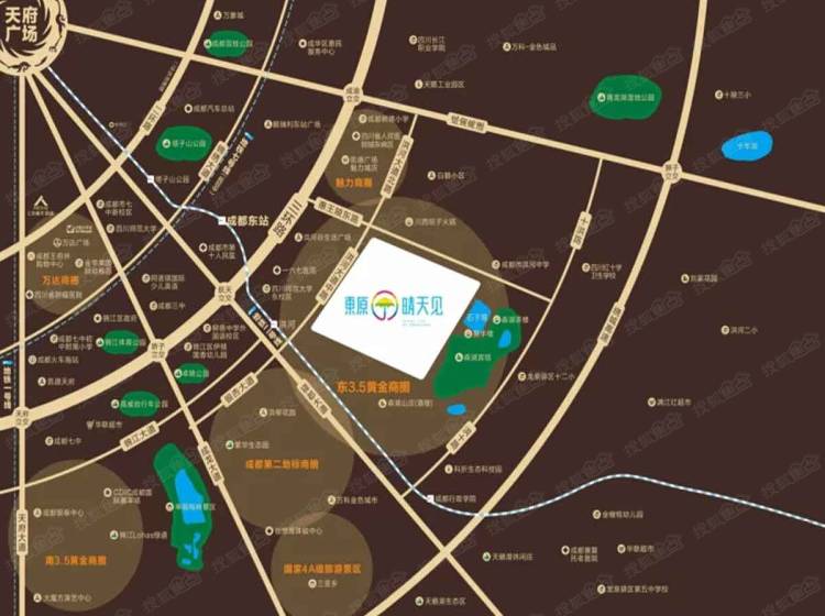 东原晴天见位于成都市东南方向,介于绕城高速与三环路之间,距成都市中心直线距离11.00KM,距离成都双流机场直线距离21.60KM,是成都市东部新区起步区龙泉驿境内。项目东侧城市主干道洪河大道已经投入使用,北侧洪景南路已经形成,东侧和南侧规划道路正在形成之中,通过道路关系进一步凸显项目区域未来的交通优势