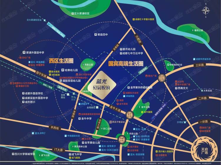 医疗配套:成都华西医院上锦分院、复兴医院、成都363医院、金牛医院等。