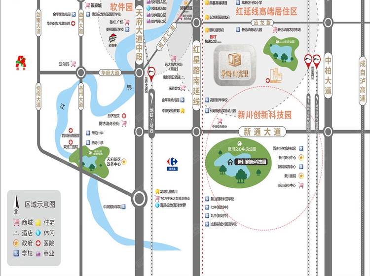 医疗配套:第六人民医院、中和医院、成都城南医院、高新龙翔医院、成都高新民爱医院。