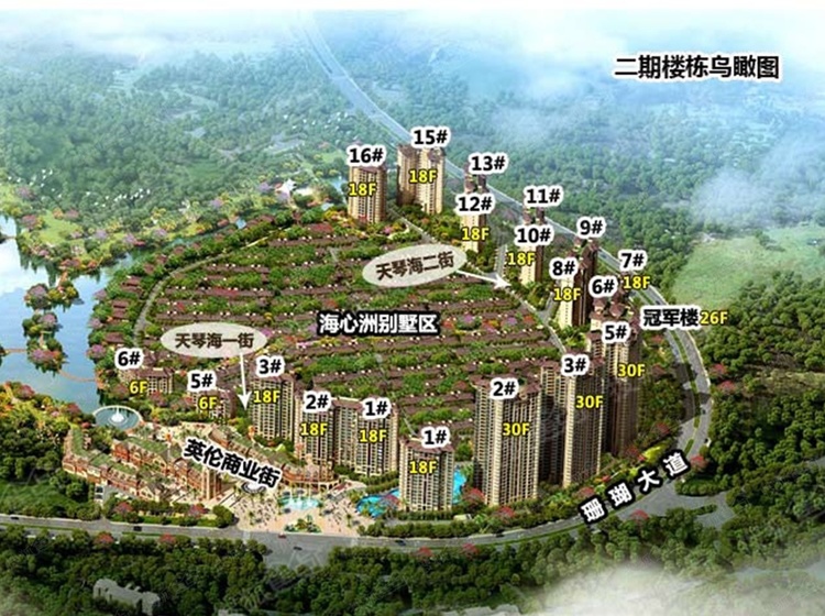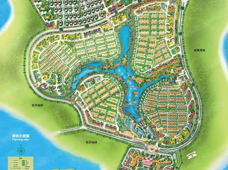社区环境:英伦商业街、清水湾中央公园、沙滩、亲子水上主题酒店及蓝卡健康医疗