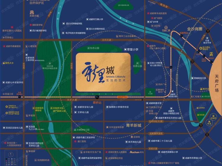 学校:草堂子美小学、距离项目1.5公里就是树德中学光华校区,泡桐树小学绿舟校区、三十七中等;