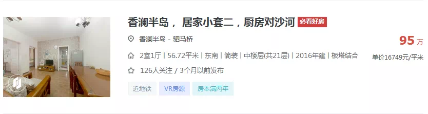 价格温柔、适合刚需:这次筛选了三个区间,不足100万的房源,100万出头的房源,150万以内的房源。