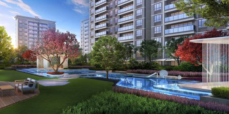 项目以现代简约设计语言,将建筑与景观有机融合。通过多层次绿化组团、艺术水景等元素,打造低密生态社区,营造"出则繁华、入则宁静"的理想人居氛围。