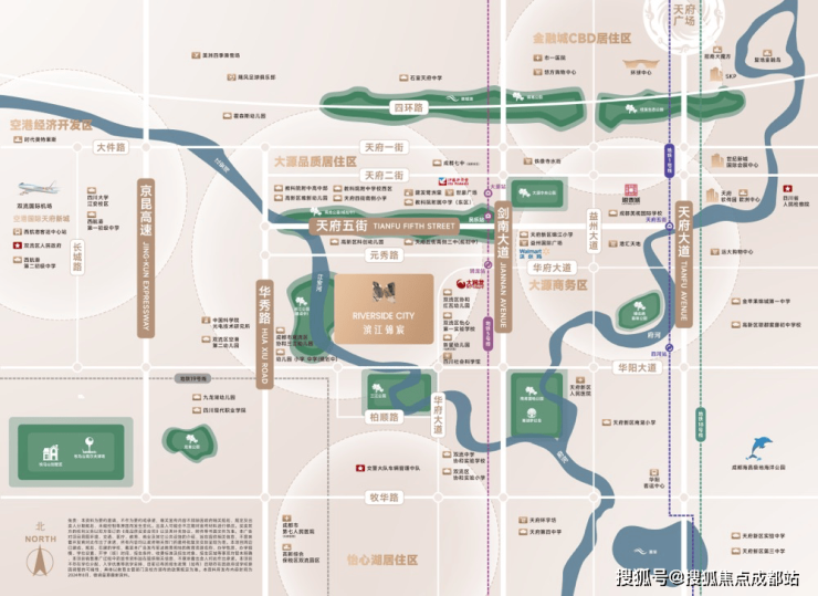 项目位于大源南板块,共享大源核心区醇熟资源(如世豪广场、银泰城商圈),同时生态资源优渥,人口密度低。板块规划有“骑龙创新园”与“民乐站TOD”,是成都城南高端低密人居的新标杆。