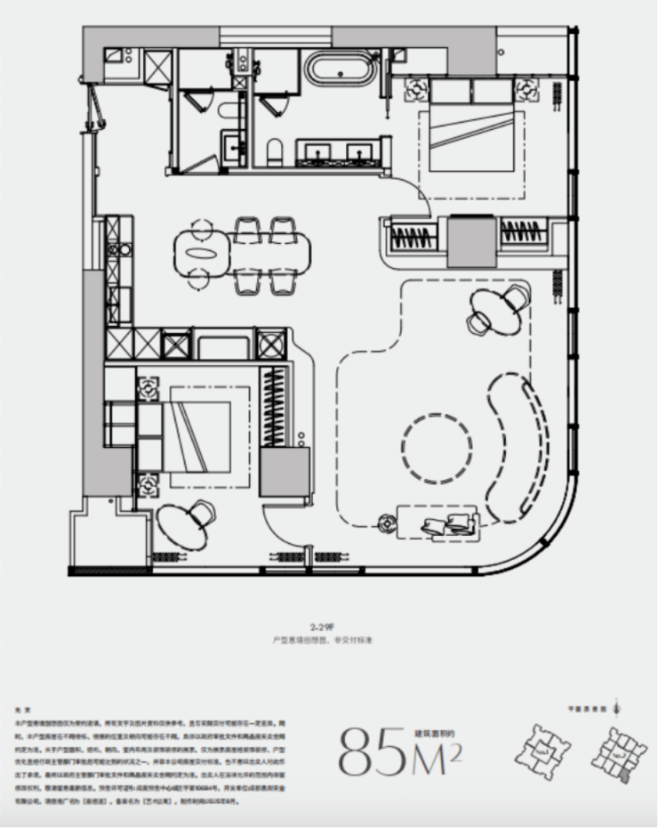 A户型:85㎡/两室一厅一厨两卫