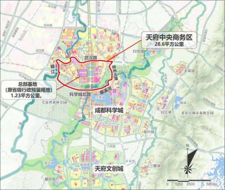 天府总部商务区被天府大道分为天东和天西两个小板块。主要的商务中心写字楼商场会展中心基本都是在天东,可以说天东汇聚了整个天府新区最好的资源,规划面积1.23平方公里的天府中央商务区总部基地是天府中央商务区的引擎性项目。锦泊中心正处在这“伟大的一平方公里”的核芯位置。