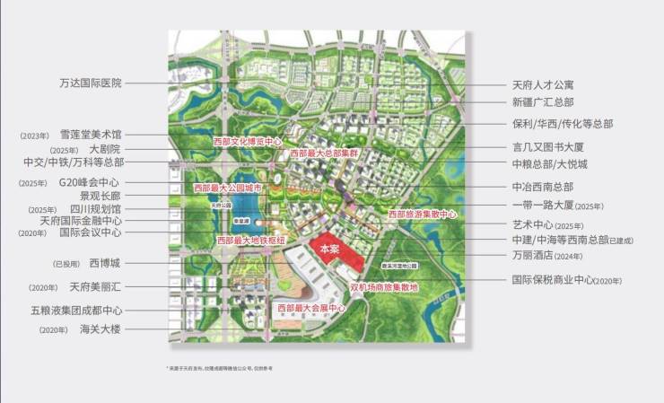 项目位于成都南拓最核心位置,天府新区总部商务区黄金十字路口。五大超级地标环绕,西边正对全球最大的单体建筑“中国西部国际博览城”,西北紧邻国家级会客厅“天府国际会议中心”,北有世界五百强企业云集的“天府金融中心”和“天府总部经济区”,东临西部第一高楼“你一带一路大厦”,南接西部最大保税店“天府国际保税中心”。地段价值无与伦比,堪称成都百年一遇的黄金宝地。