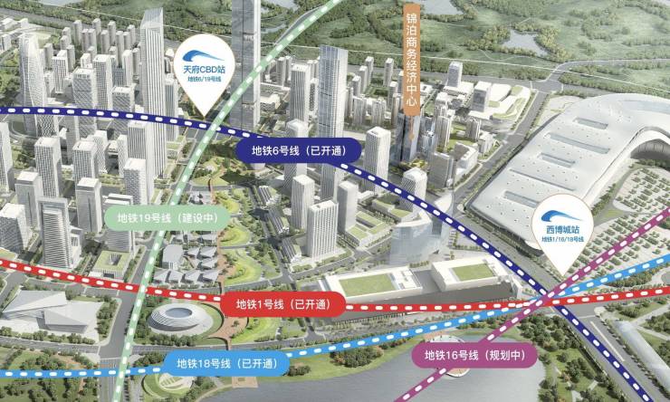紧邻地铁“西博城站”和“天府CBD站”,西博城站还承担城市候机楼功能,可提前办理登机牌和托运行李。不久将来,六条地铁线汇聚,世界级地铁规划,轨道交通全城最优。