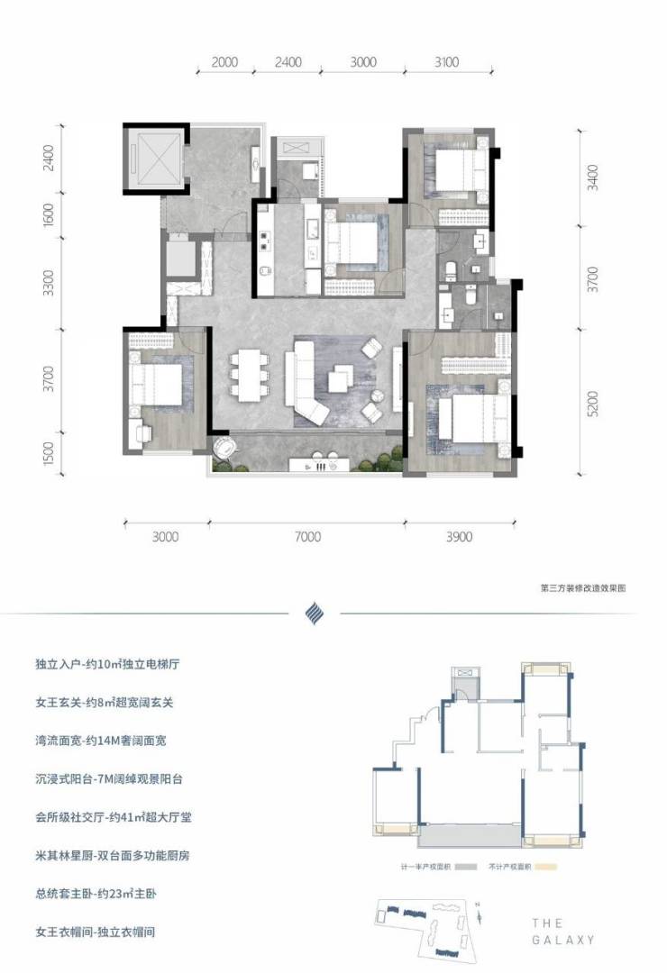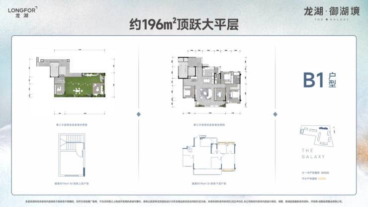 成都龙湖御湖境项目由7栋住宅组成,建面约143-196㎡湖居大平层,以约2.0超级低密,全2T2板式;