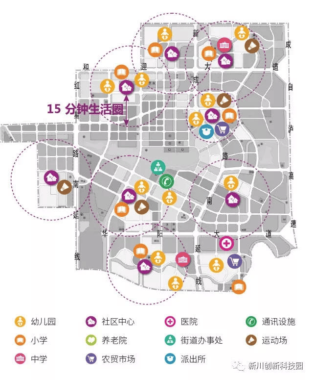 鲜氧生态:三大公园环绕,新川之心中央公园800多亩,是成都第一个5G生态智慧公园;新怡公园,占地约100亩;新川湿地公园,占地约198亩。