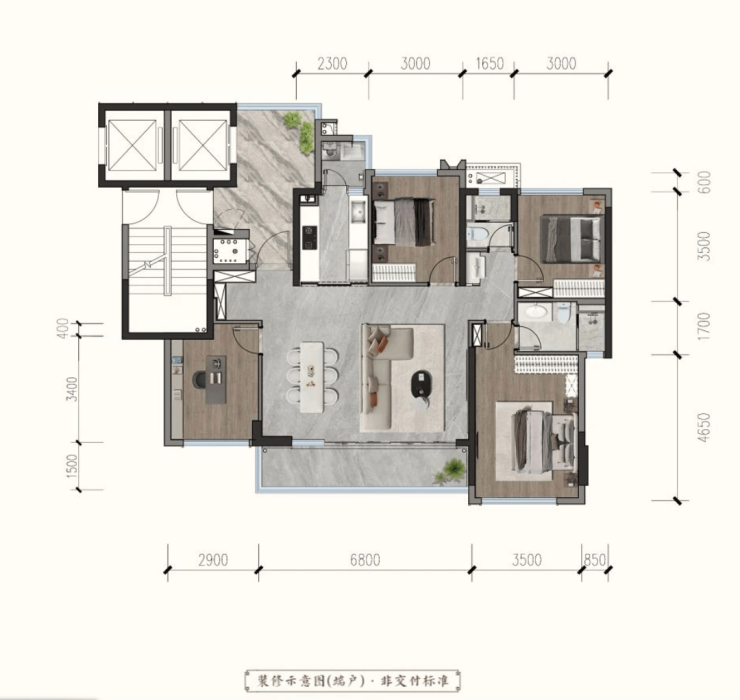 户型设计:130-191㎡纯板式四居,标配南向双阳台、私厅入户等创新设计,实现空间最大化利用。