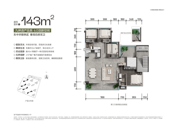尊配独立电梯厅;超60㎡宽幕光厅;270°环幕景观舱;双景观主卧套房