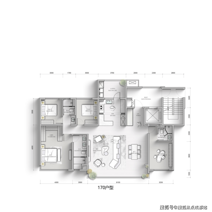170m²套四三卫