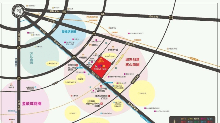 拥有160万㎡超大商圈,门口就是繁华主场:468商业中心 伊藤亚洲旗舰店 卓锦曼购中心 沃尔玛 华熙.LIVE528西南伊藤旗旗舰店、永辉超市、项目自持18万方文博区,构建片区高端潮流消费地