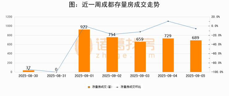 从存量房来看,2025年09月05日成都存量房单日成交689套,比昨日减少40套,环比下降5.5%。从近一周存量房成交来看,成都存量房日均成交套数为541套,09月05日单日成交689套,高于近一周平均水平27.4%。