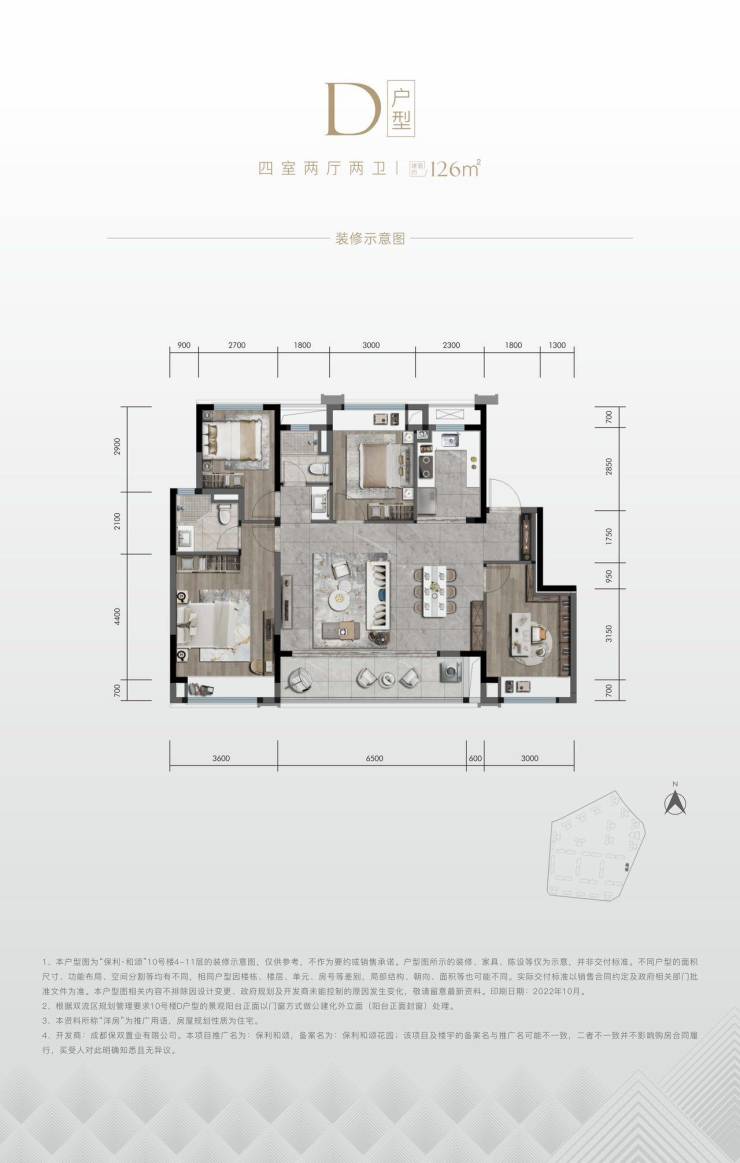 约13.7米南向采光面,35㎡餐客横厅;四室全明格局,双套房设计;独立家政间,约6.2米景观阳台。