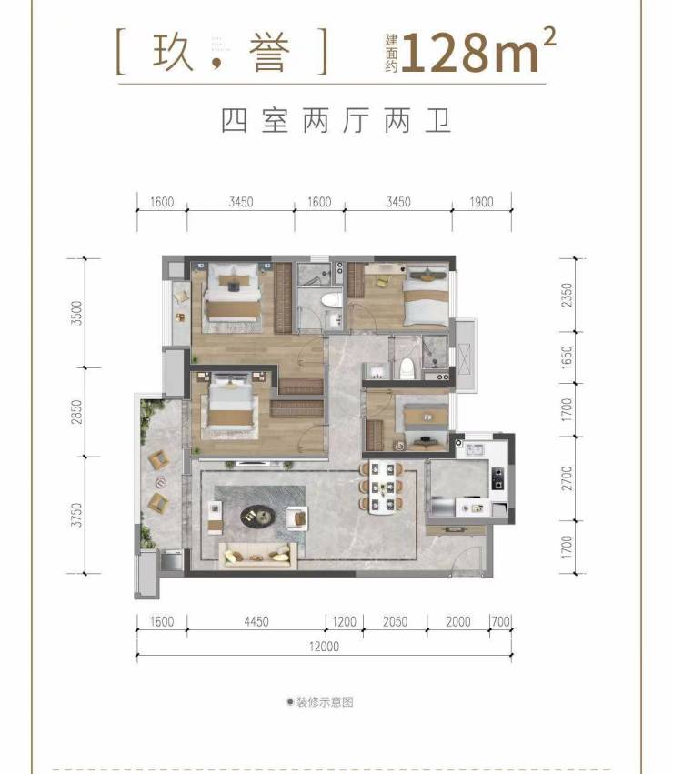 C户型:128㎡(四室两厅两卫)