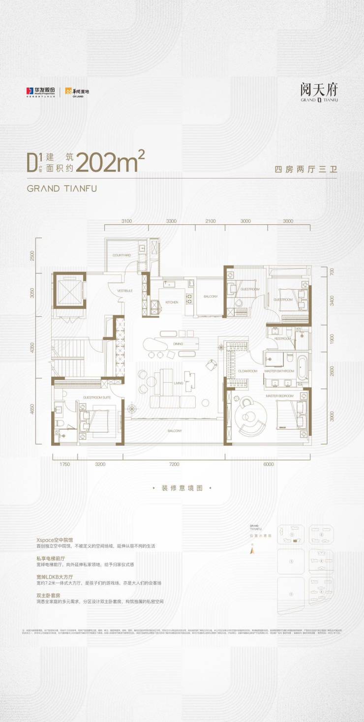 202㎡(四室两厅三卫);均价3.3-3.7万/㎡;总价660-760万