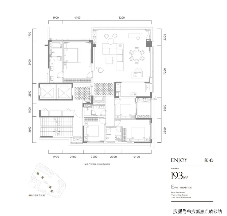 建面约 193㎡ 四室两厅三卫(总价 440-470万)