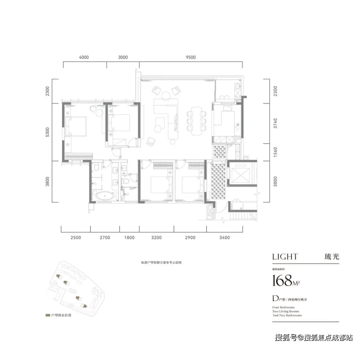 建面约 168㎡ 四室两厅三卫(总价 340-370 万)