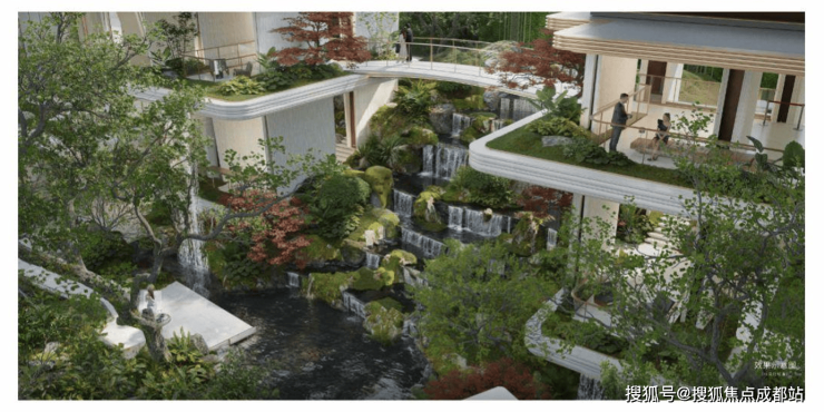 以无界森野疗愈景观系统,重新定义园林景观风貌,摒弃传统堆砌,引川沟谷冰河的空间逻辑入园,让建筑生长于自然。在这里,仪式感与松弛感并非对立,而是归家途中的双重复合体验。超2000m2的水景与五座景观亭,构成了社区景观的活力基底。更以"川西盛景微缩园林"为创意,将红石滩、墨石公园、达古冰川、月光湖、格聂之眼等十一大标志性地貌意境,化为园中十一景,让每日归家,皆如漫步于浓缩的川画廊。
