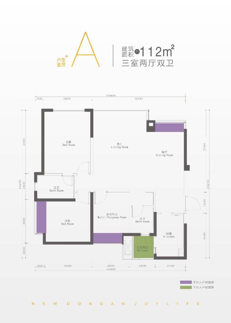 112㎡三房:南北通透,主卧套房设计,双卫配置