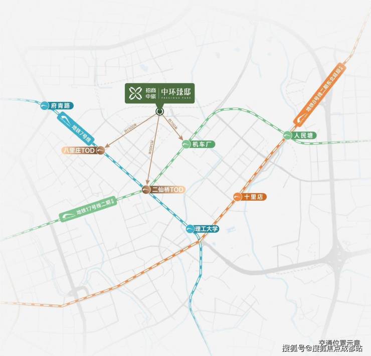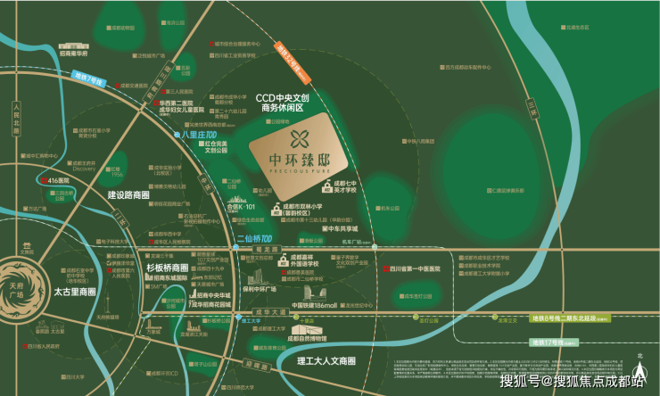 交通:双TOD环绕,二仙桥、八里庄双TOD打造CCD黄金生活区。拥有两横(成华大道、蜀龙路)、三纵(中环路、二环路、三环路)、三轨(地铁7、8、17号线)多维立体交通网络。周边直线3km范围内有8个地铁站,如八里庄、二仙桥等,轨道交通发达;直线1km内有10个公交站,公共交通便捷。