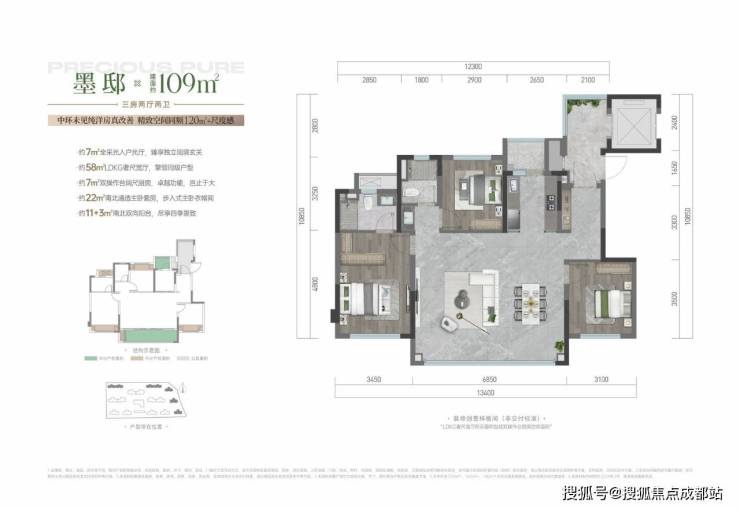 产品户型:涵盖建面约 109-143㎡,包括约 109㎡套三(墨邸)、约 136㎡套四(蘭邸)、约 143㎡套四(雲邸)。