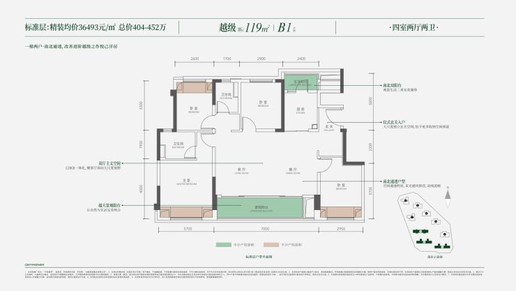 B1户型-越级119-建面约119㎡(四室两厅两卫)