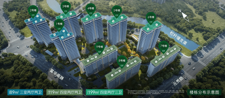 少量搭配:89㎡三房双卫、119㎡四房双卫