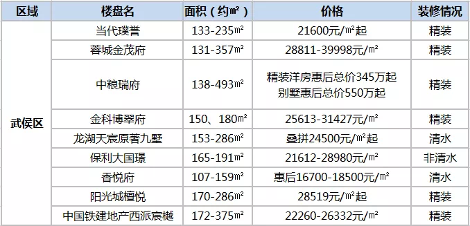 武侯区有剩余房源的楼盘基本都在武侯新城,并且面积都偏大,最小面积约107平方米。