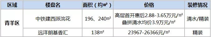 青羊区目前有2个楼盘有摇号剩余房源在售,均为高端改善项目,且剩余房源面积普遍偏大。