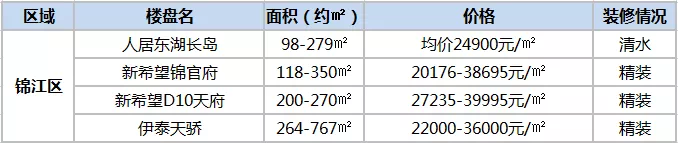 锦江区目前有4个项目有剩余房源,均为高端项目,周边交通、商业、教育等配套均比较成熟。