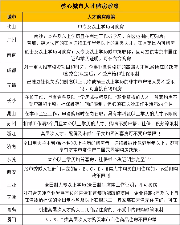 如前两个月出台新政的佛山,只要有中专及以上学历,就可以作为人才,享受户籍人口的购房政策,也就是不限购了。