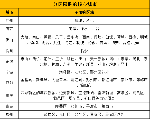 目前,分区限购的核心城市的不限购区域,主要有下图这些:
