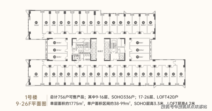 总层高:1#26层(SOHO:9-16层 LOFT:17-26层)