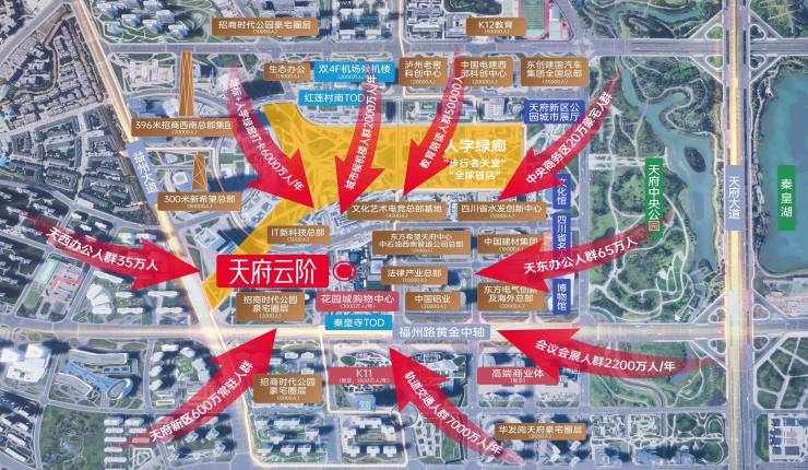 中西部最大国际会展中心西博城等国家级会展资源,每年带动超5000万参展人群。四川省名人馆、雪莲堂美术馆、文化馆、博物馆、大剧院等超强人流引擎。