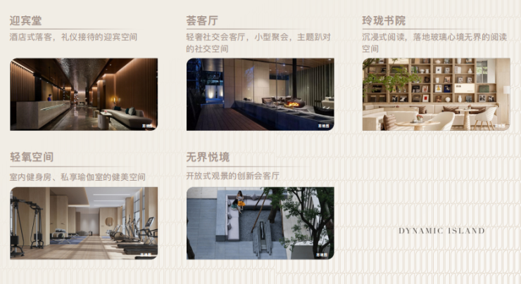 以“无界之心”命名会客厅,以五大场景落位五大主题会。演绎礼仪接待、会客聚会 、玲珑书院 、邻里时光、健身瑜伽,全时段的生活场景。