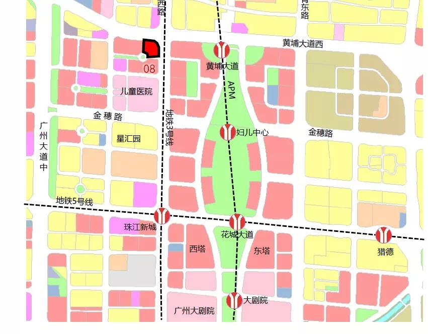 很明显可以看到,花城广场这一块,中间整个地块全部标红,也意味着这个地方全是写字楼,必定有大量企业入驻和就业人群。而旁边的黄色住宅用地,必然价值上存在不可替代性。