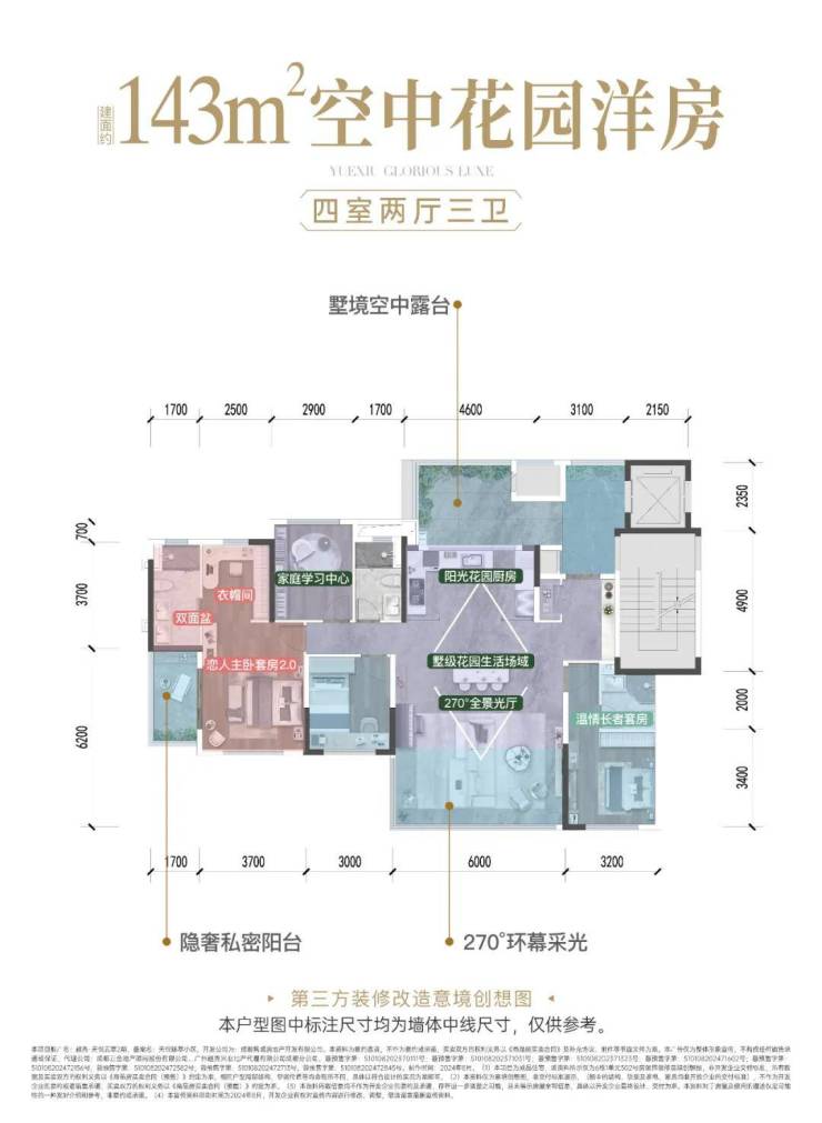 越秀洞悉空间与生活的关联,精研当代家庭居住习惯和诉求变化,从舒适改善和高定私享两大新时代居住主张出发,以“别墅平层化”理念打造划时代王炸新品——建面约143㎡空中花园洋房,实现了主城难得一见的7层洋房业态,业主既可享受别墅的花园生活场景,又能享受大平层的空间尺度。