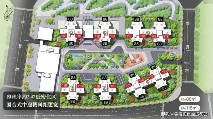 2.47容积率,围合式布局确保宽绰楼间距,呈现舒居尺度。