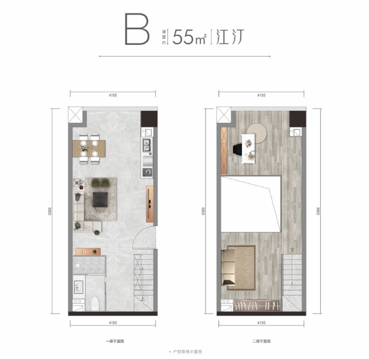 55平米,赠送下来约77平米左右的阔居套二,开间4.15米*9.9米,其中开间可达4.15米的超大采光面,与市面上住宅120平米左右三房的采光一致,设有独立卫生间,4.2米的层高,业主可根据使用情况灵活变换格局及空间,可做奢豪套一,舒适套二,可完全自主个性的体现。