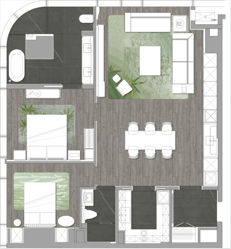 超120㎡的客厅空间体验,160㎡的主卧套尺度