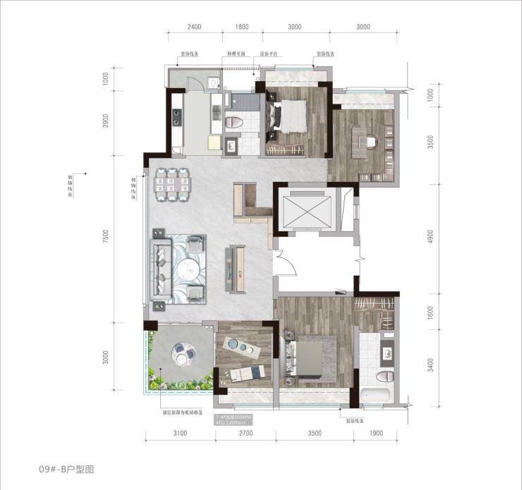 产品面积:主力建面约119m²/134m²/141㎡/151m²/173m²