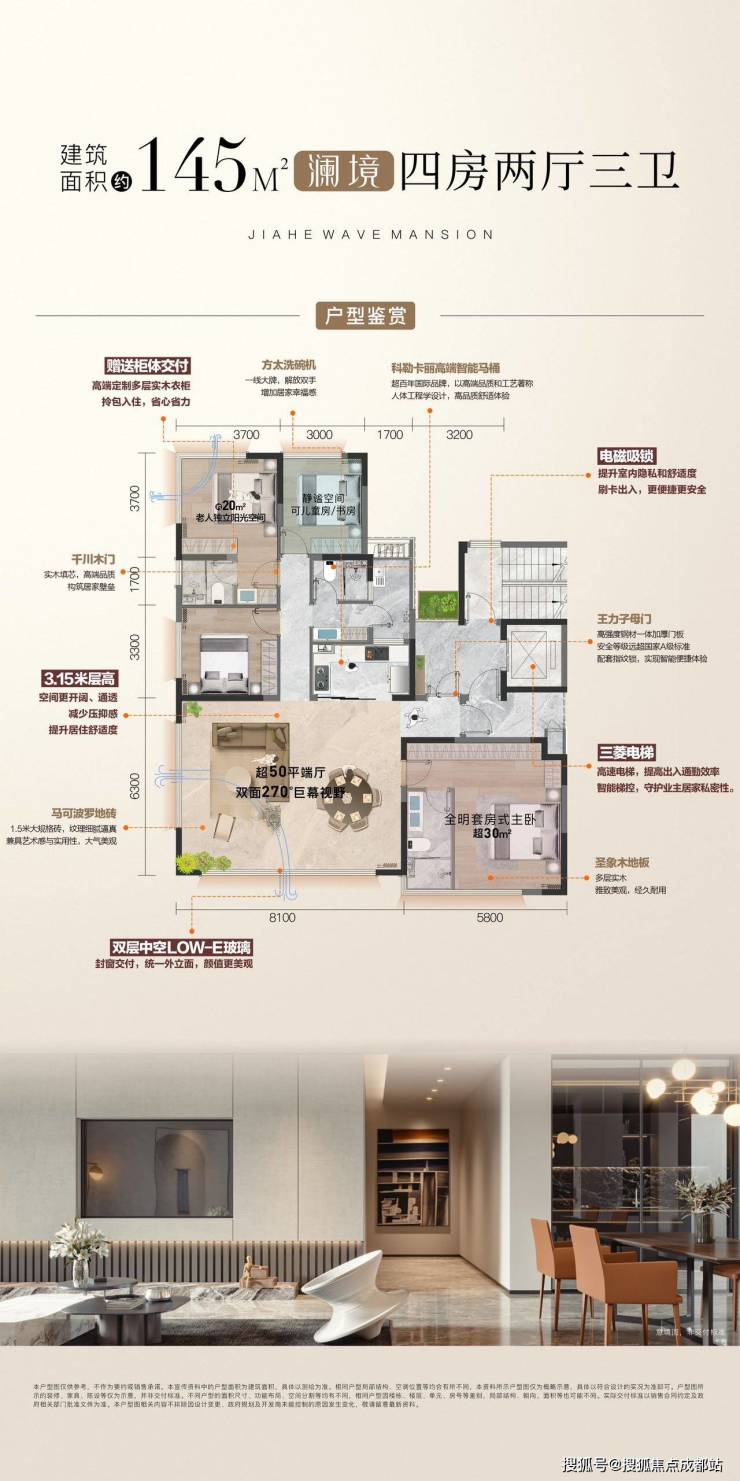 【极幕端户】约50㎡大横厅,双面采光 270°巨幕视野,将至美景观引入室内,诗意画境日夜皆景