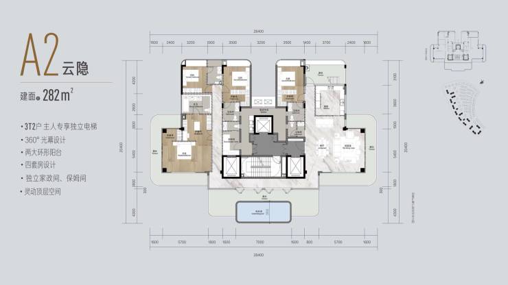 顶楼(清水)面积:282㎡-325㎡;总价:730万-1000万