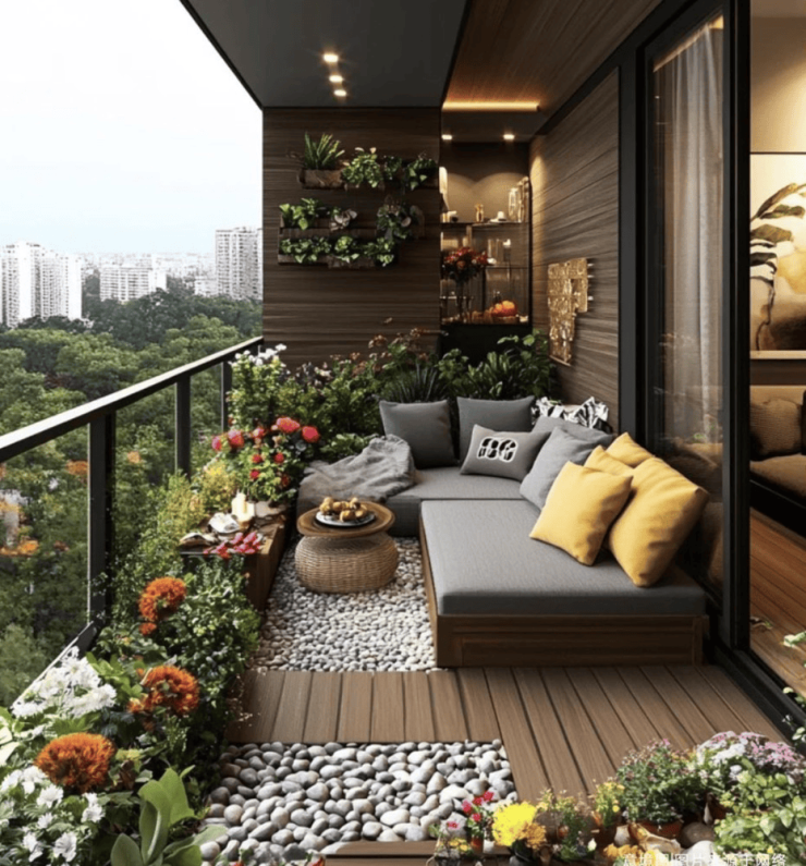 露台设计:全景阳光露台延伸生活场景,既可瑜伽冥想也能下午茶会;功能型生活阳台整合洗护收纳等实用功能。