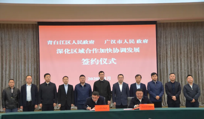 3月30日,成都青白江区人民政府和德阳广汉市人民政府就“深化区域合作加快协调发展”签约。