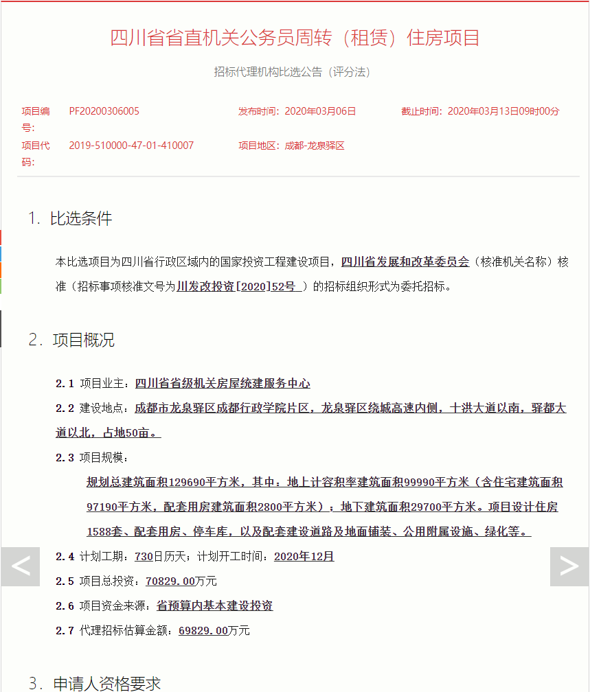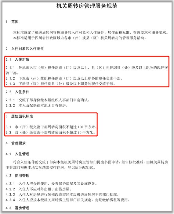 从招标公告的标题可以看到,该项目属于省级机关公务员的“周转(租赁)住房”。根据四川省地方标准《机关周转房管理服务规范》DB51/T2615-2019的相关规定,机关周转房的入住对象是异地调入或下派的交流干部。